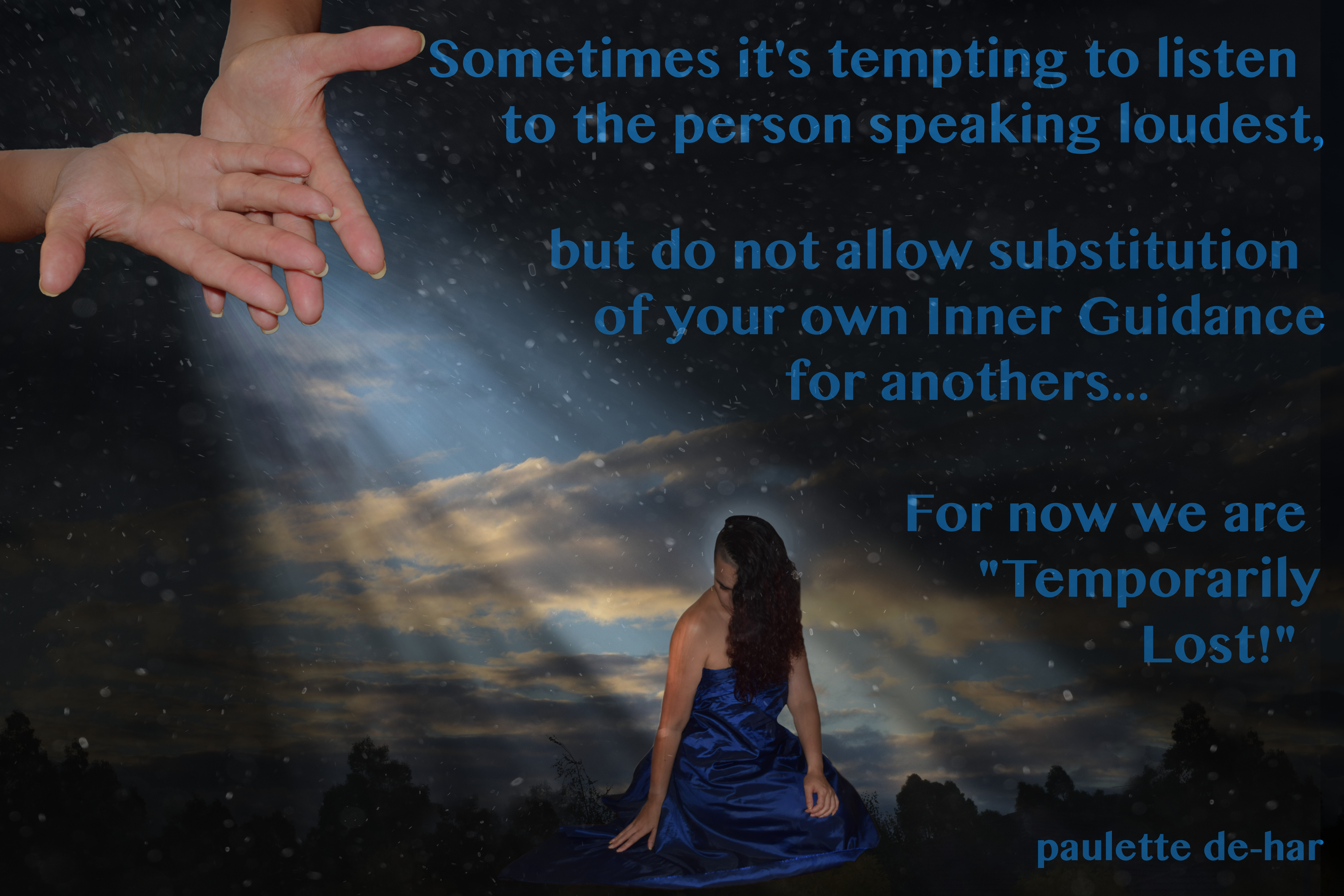 Our emotions are our Inner Guidance letting us know if we’re moving towards something we’re wanting (positive emotions) or something we’re not wanting (negative emotions) so it’s virtually impossible for someone else to have experienced all we’ve experienced in our lives and feel the same as we do in relation to everything that’s important to us and everything we’re wanting, so the truth is, no other is in a better position than ourselves to decide what’s best for us, end of story. (Not really end of story, but you know what I mean don’t you?)